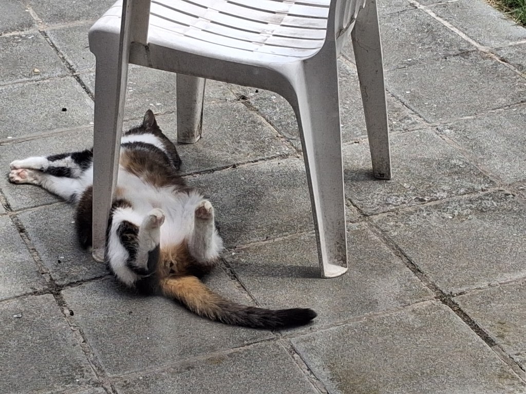 De poes heeft maar een raar standje…zou dat makkelijk liggen ?