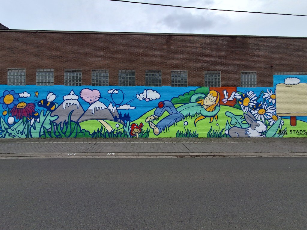 Een super mooie mural is het. De vrolijkheid straalt er vanaf.