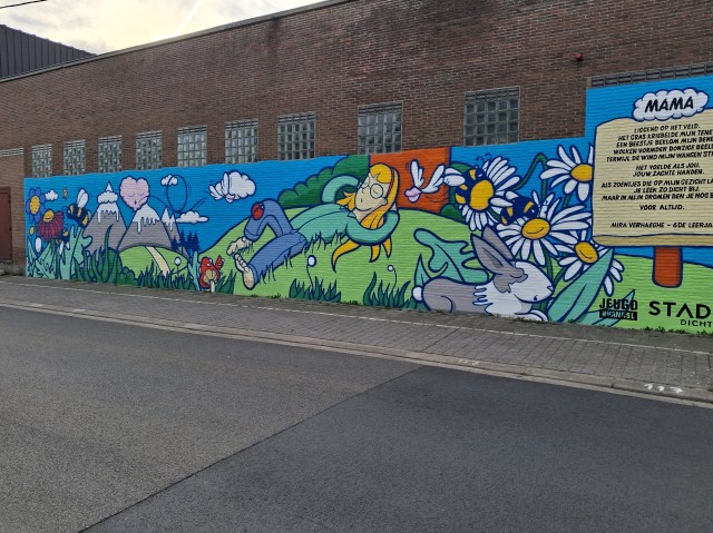 Over deze mural heb ik het hier onlangs gehad. Vorige week fietste ik aldaar en nam een foto van het gedicht.