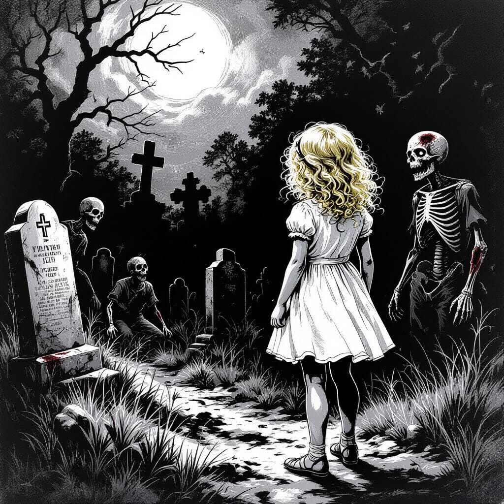 Bieke die graag op het kerkhof tussen de grafzerken speelt met haar vriendin Annabel houdt van Halloween. Lekker griezelen tussen de zombies en de skeletten.