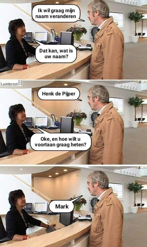 Het kan wel voorstellen naam veranderen. Wat een woord achter naam. Moet wel kunnen veranderen. Maar hij wil Mark noemen. Ik dacht m,eer achter naam. Grappig….Alvast fijn weekend.