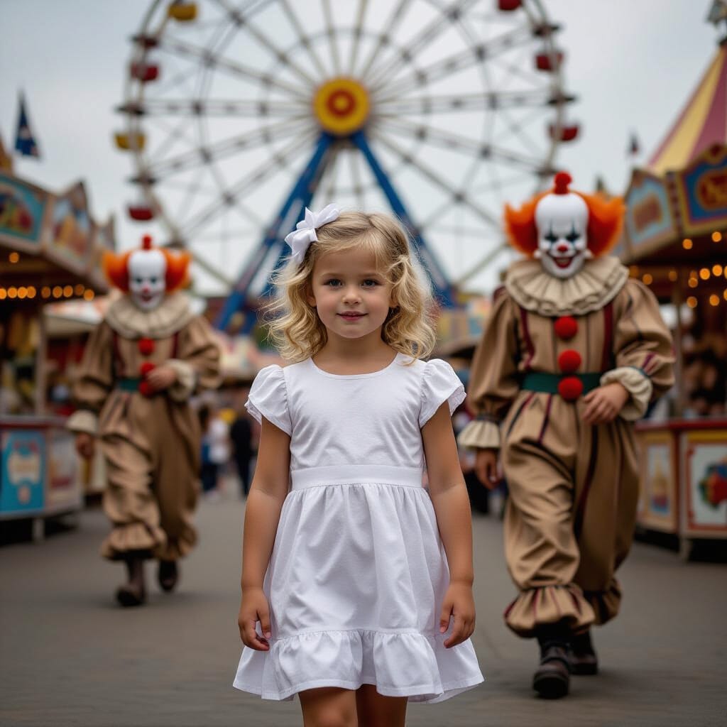 Die foto met dat lieve meisje en die enge clowns is echt onheilspellend…