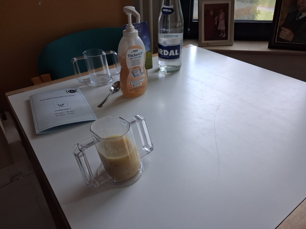 Maandag 20 april mocht ze weer naar het WZC. Ik werd verwittigd dat ze terug was. Vlug er naar toe gereden Een logopediste zou haar helpen met wat eten. Ze rochelde nog en zag er vermoeid uit. Nu hopen dat ze weer wat kracht opbouwt.